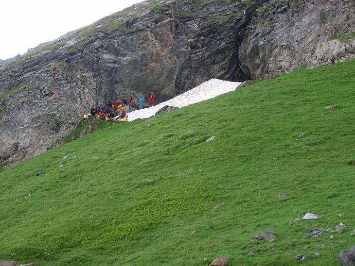 Intentas protegerte de la lluvia, que se congela en tu cuerpo con la helada corriente que sale de la cavidad...y entre tembleques miras el cogote a tu compañero que tampoco está quieto y sin pestañear piensas en lo bien que estarías tomando unas cañas en el bar, o leyendo un libro a la orilla del río en el Refugio...o todo al mismo tiempo por qué no?...Buff!!
